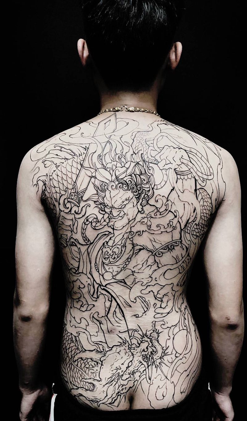 当前位置: 首页 >安徽省合肥市纹身店-夜阑刺青纹身图案>满背明王未完纹身图片_腰部背部新传统龙纹身图案