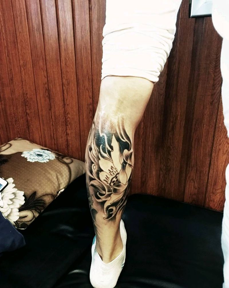 • T网红王老大花腿龙纹身图片_腿部新传统纹身图案