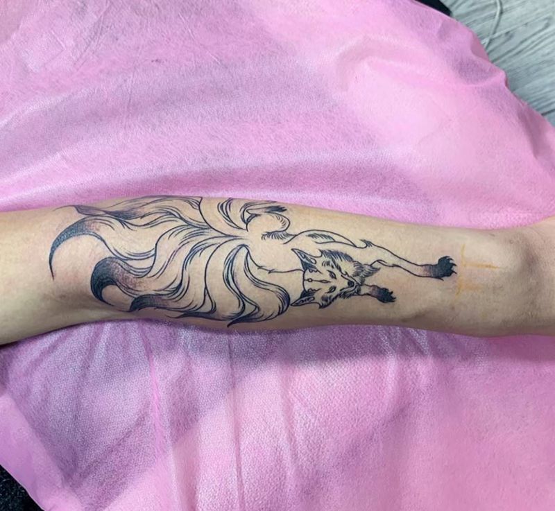 九尾纹身图片_手部新传统纹身图案