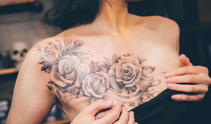 当前位置: 首页 >安徽省合肥市纹身店-老艺人刺青工作室纹身图案>玫瑰美人纹身图片_胸部水墨纹身图案