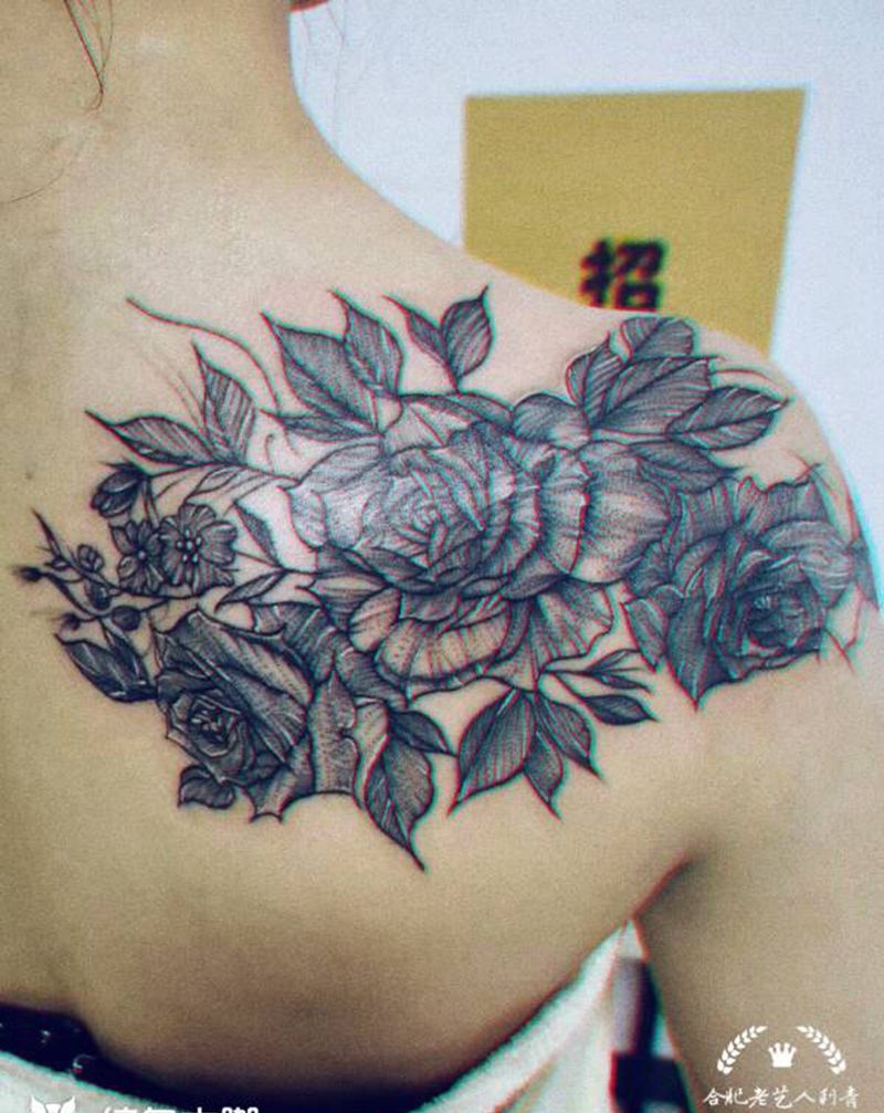 肩膀#点刺素花纹身图片_肩部点刺纹身图案