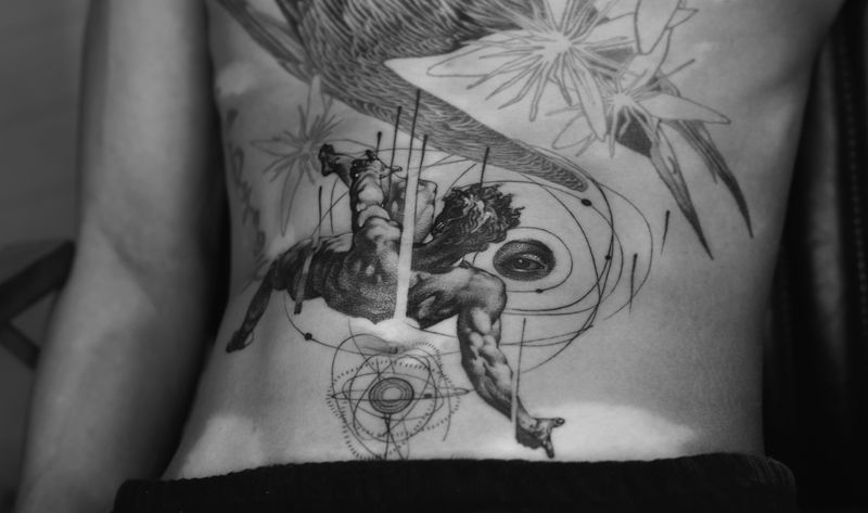 自然刺青處-成为前 作品纹身图片_腹部欧美写实纹身图案