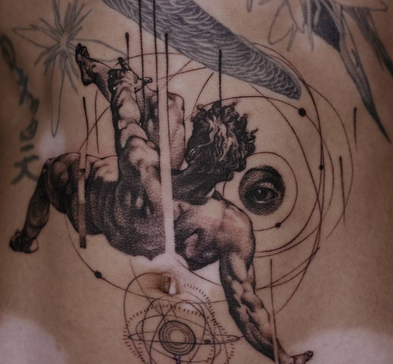 自然刺青處-成为前 作品纹身图片_腹部欧美写实纹身图案