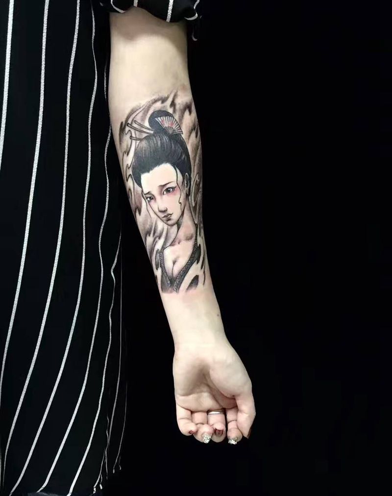 小手臂艺妓纹身纹身图片_手臂新传统艺妓手臂花臂纹身图案