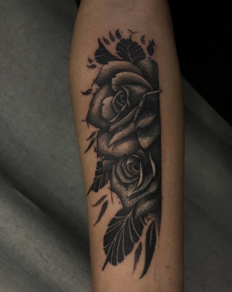 当前位置: 首页 >安徽省合肥市纹身店-亘.艺术纹身会馆纹身图案>玫瑰花纹身图片_手臂欧美写实点刺纹身图案