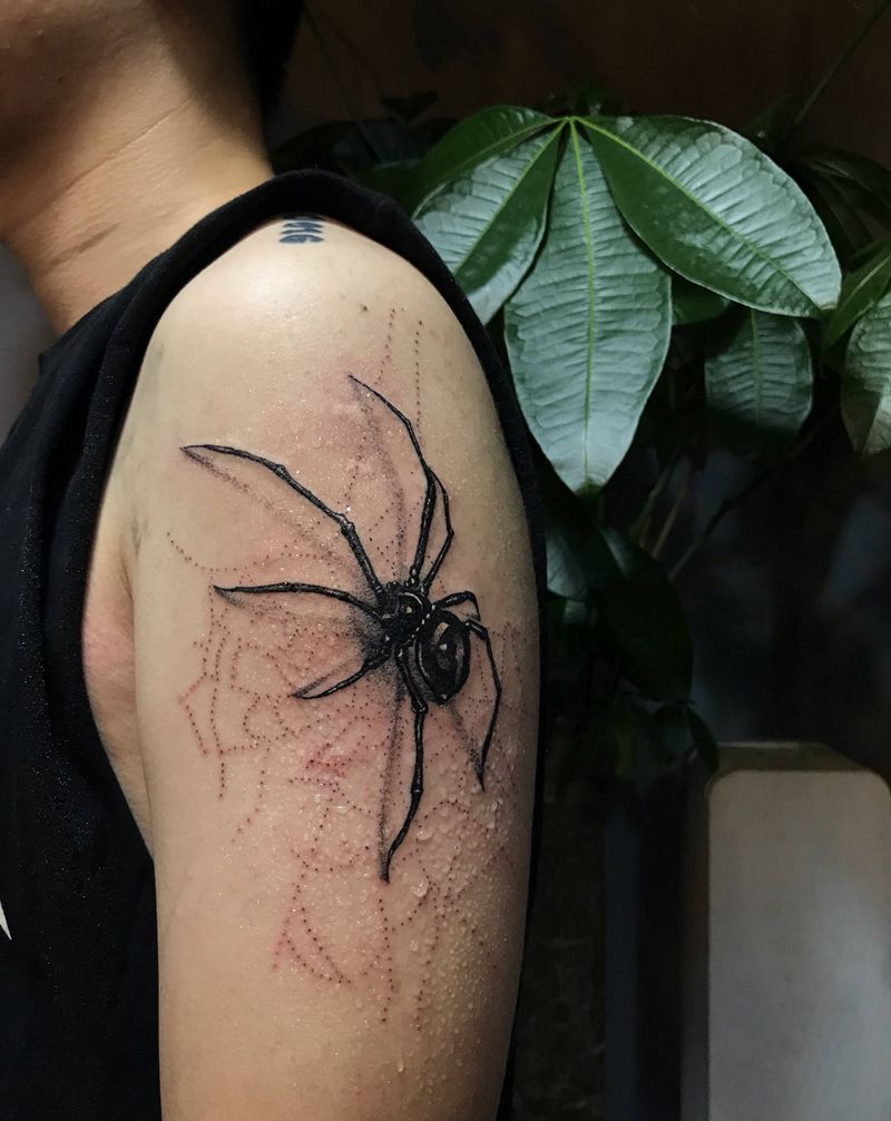 当前位置: 首页 >安徽省合肥市纹身店-亘.艺术纹身会馆纹身图案>黑蜘蛛纹身图片_手臂欧美写实纹身图案