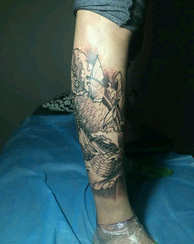 当前位置: 首页 >安徽省合肥市纹身店-亘.艺术纹身会馆纹身图案>小腿鲤鱼纹身图片