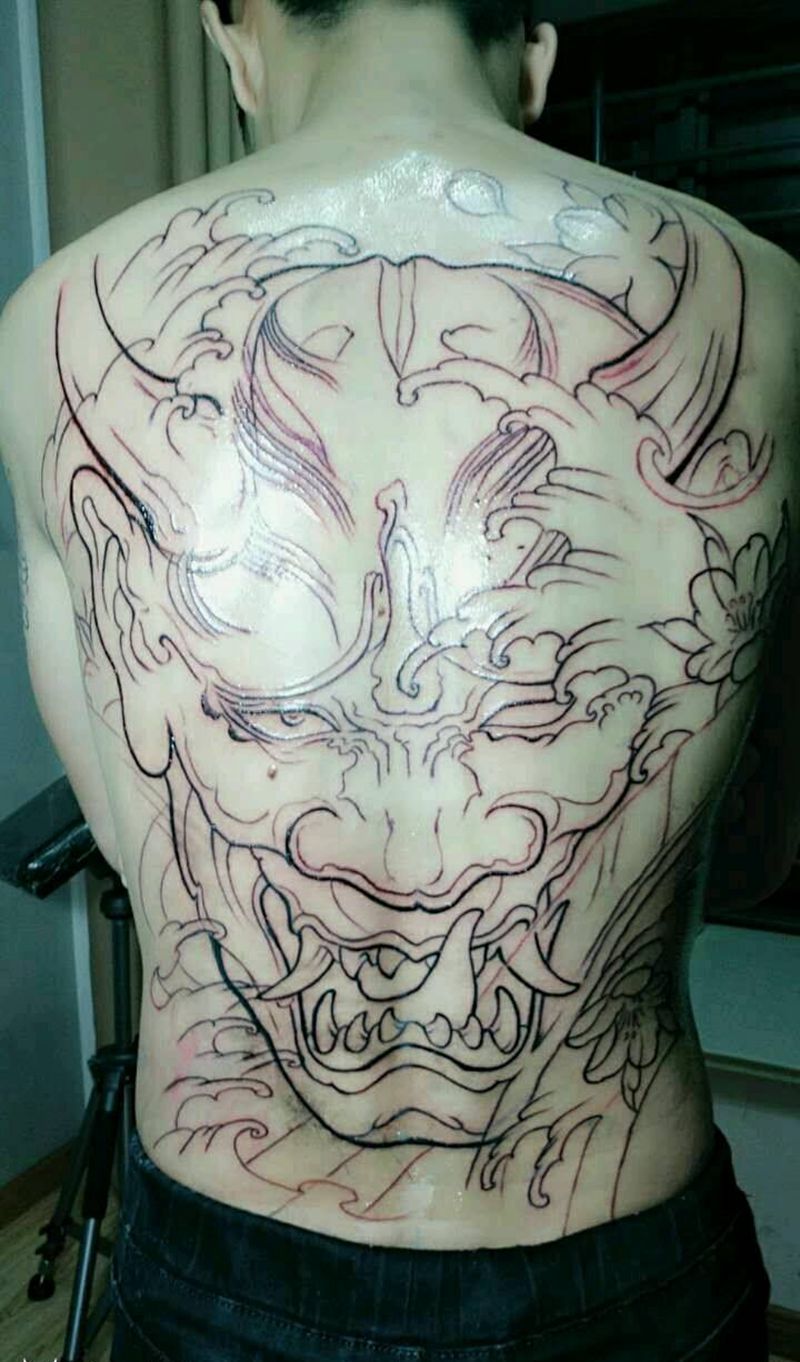 黑灰满背纹身图案