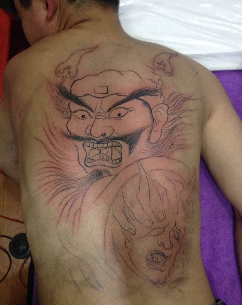 钟馗后背纹身图片_背部新传统纹身图案
