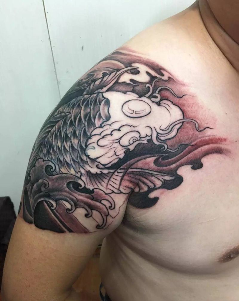 招财鲤鱼盖老虎 盖图纹身纹身图片_传统纹身图案