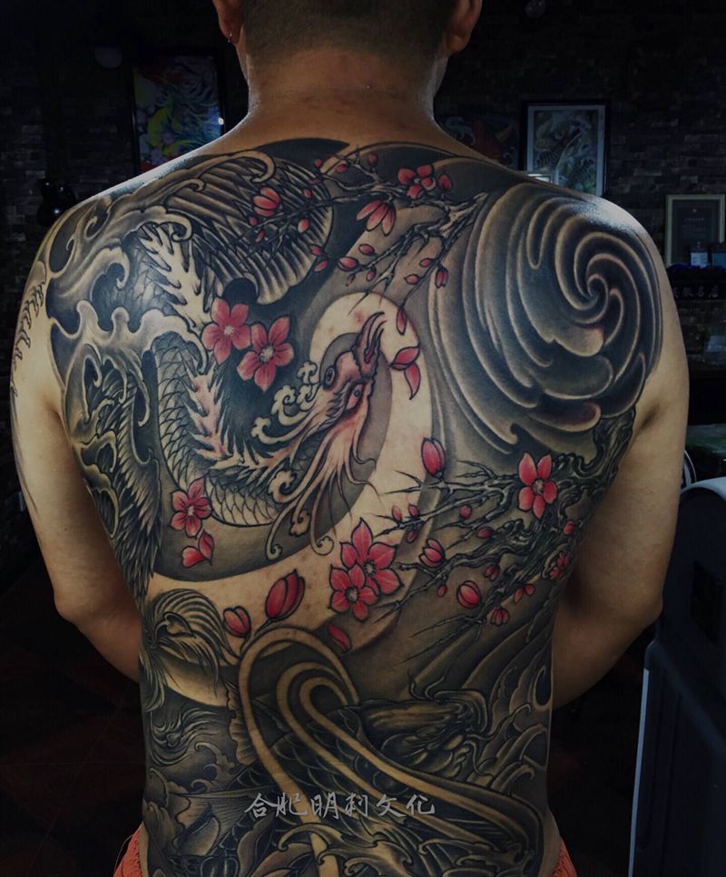 黑灰满背纹身图案