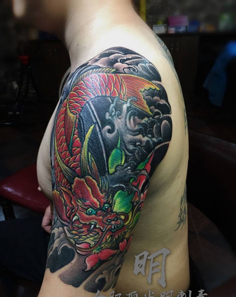 • T网红王老大花腿龙纹身图片_腿部新传统纹身图案