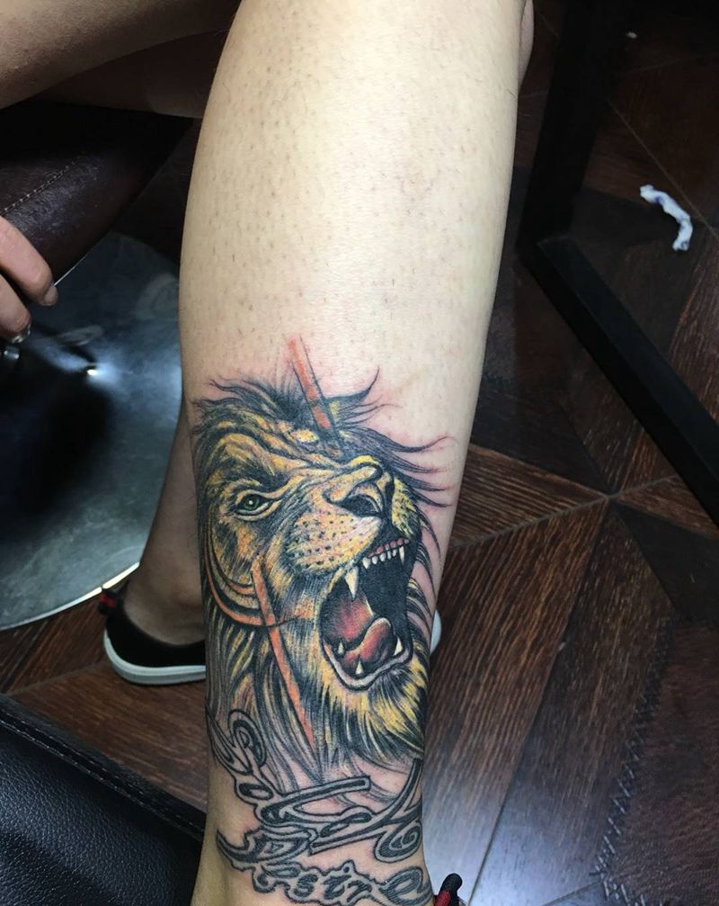 • T网红王老大花腿龙纹身图片_腿部新传统纹身图案