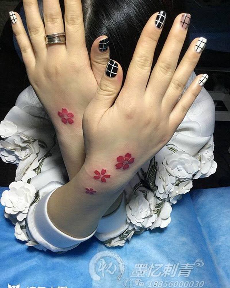 • 手背潮流时尚的玫瑰花眼睛纹身图案