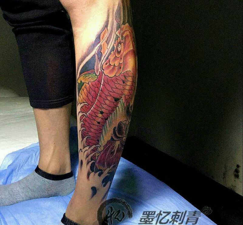 包腿鲤鱼纹身图片_腿部传统原创成品手稿纹身图案