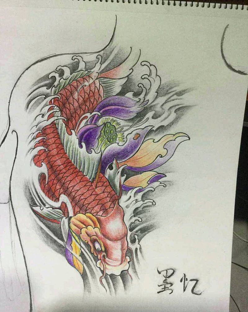 当前位置: 首页 >安徽省合肥市纹身店-合肥墨忆纹身纹身图案>包腿鲤鱼纹身图片_腿部传统原创成品手稿纹身图案