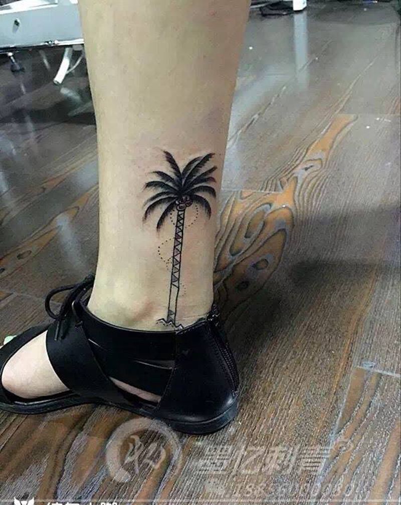 椰子树一枚纹身图片_成品腿部清新写实传统几何植物静物纹身图案