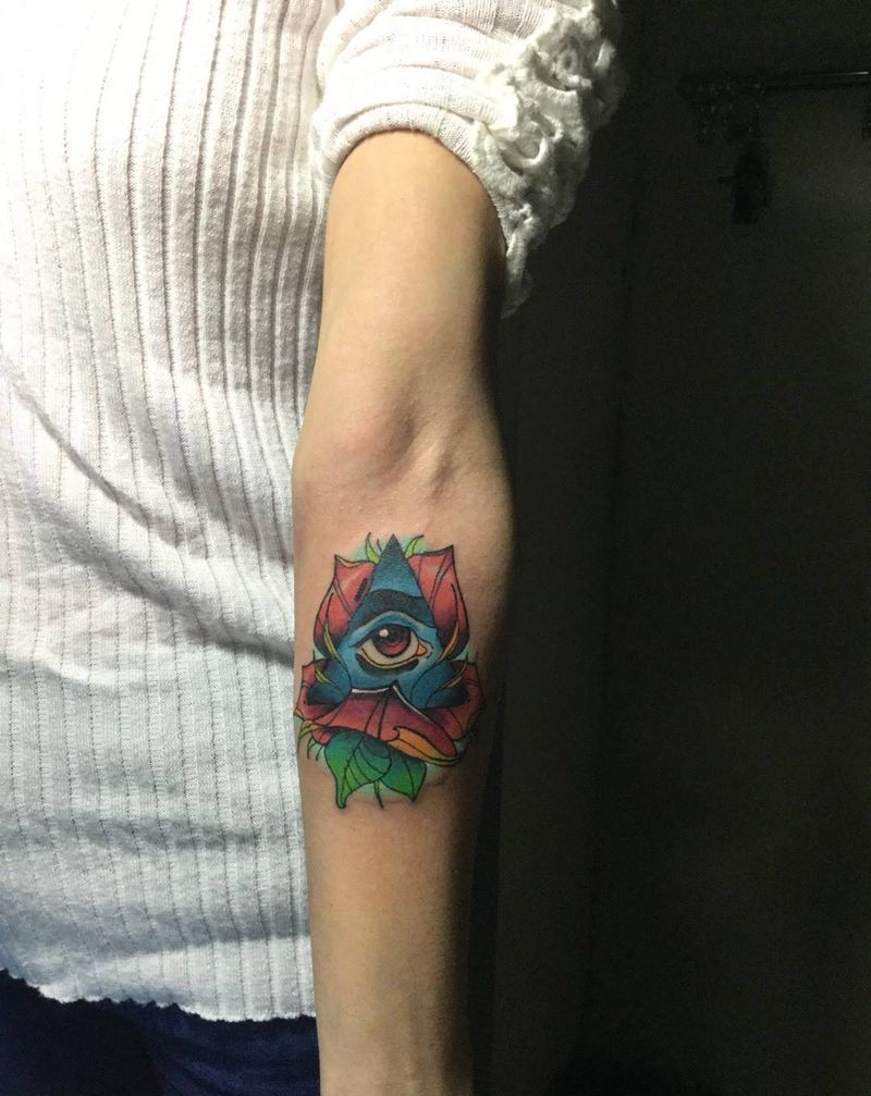 • 手背潮流时尚的玫瑰花眼睛纹身图案