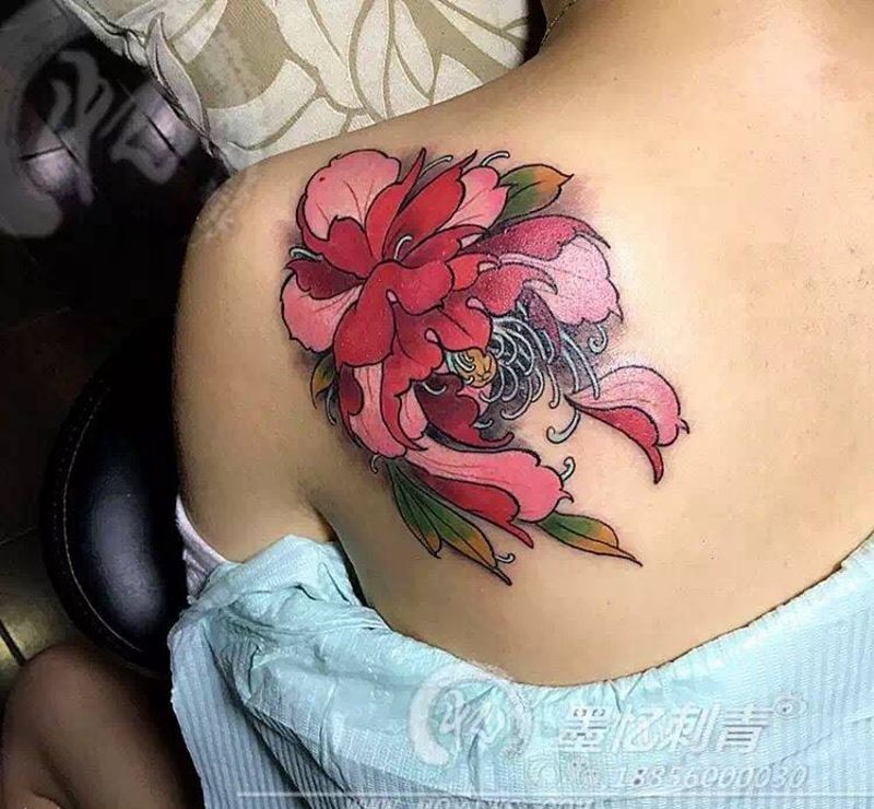 当前位置: 首页 >安徽省合肥市纹身店-合肥墨忆纹身纹身图案>牡丹纹身图片_清新传统肩部植物纹身图案