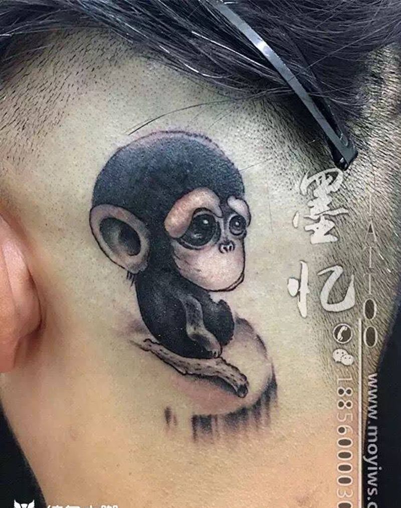 当前位置: 首页 >安徽省合肥市纹身店-合肥墨忆纹身纹身图案>猴头纹身图片_成品颈部肖像清新写实人物动物纹身图案