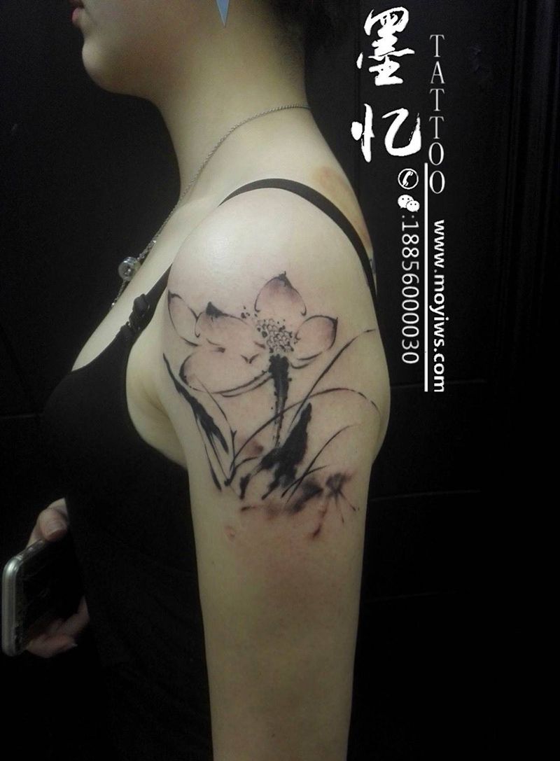 当前位置: 首页 >安徽省合肥市纹身店-合肥墨忆纹身纹身图案>水墨荷花纹身图片_成品手臂清新静物纹身图案