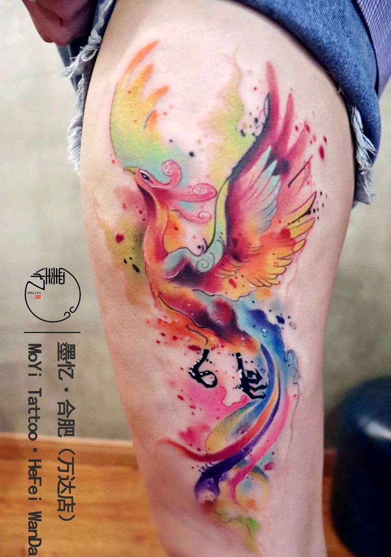当前位置: 首页 >安徽省合肥市纹身店-合肥墨忆纹身纹身图案>水彩凤凰纹身图片_腿部水彩纹身图案