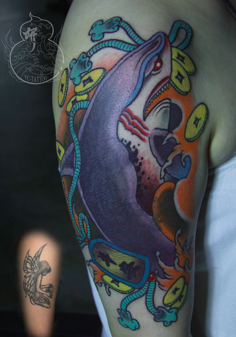 当前位置: 首页 >安徽省芜湖市纹身店-妍刺青纹身图案>遮盖纹身图片_手臂Old SchoolNew School鲨鱼纹身图案