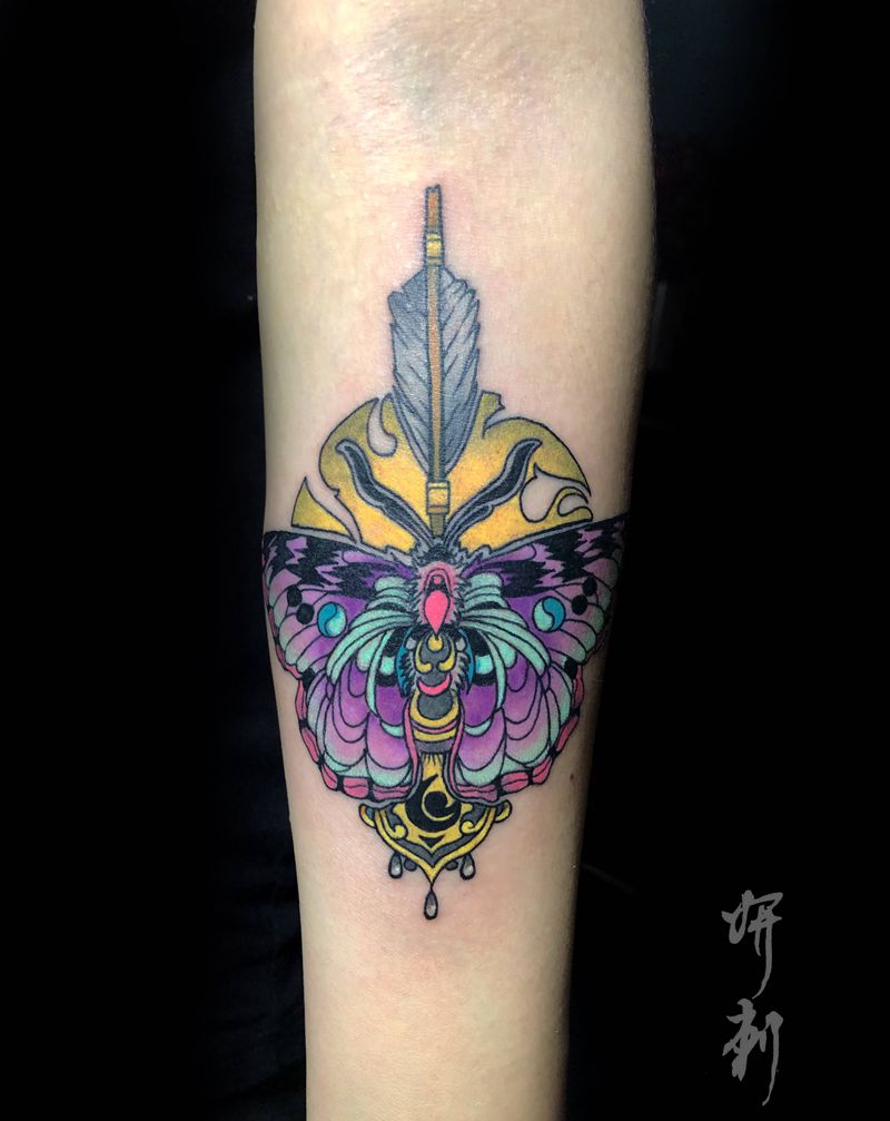 当前位置: 首页 >安徽省芜湖市纹身店-妍刺青纹身图案>扑楞蛾子纹身图片_手臂New SchoolOld School蝴蝶纹身图案
