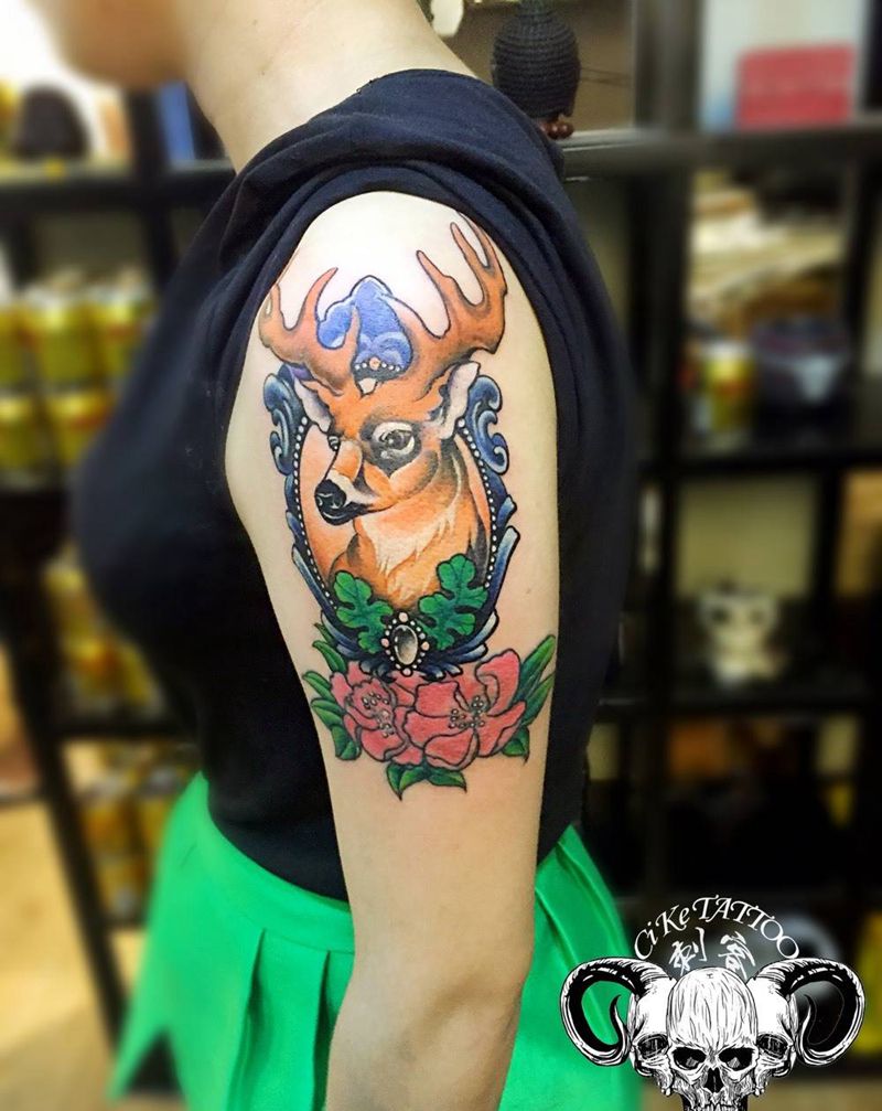 当前位置: 首页 >安徽省蚌埠市纹身店-蚌埠刺客纹身培训-陳TATTOO纹身图案>麋鹿纹身图片