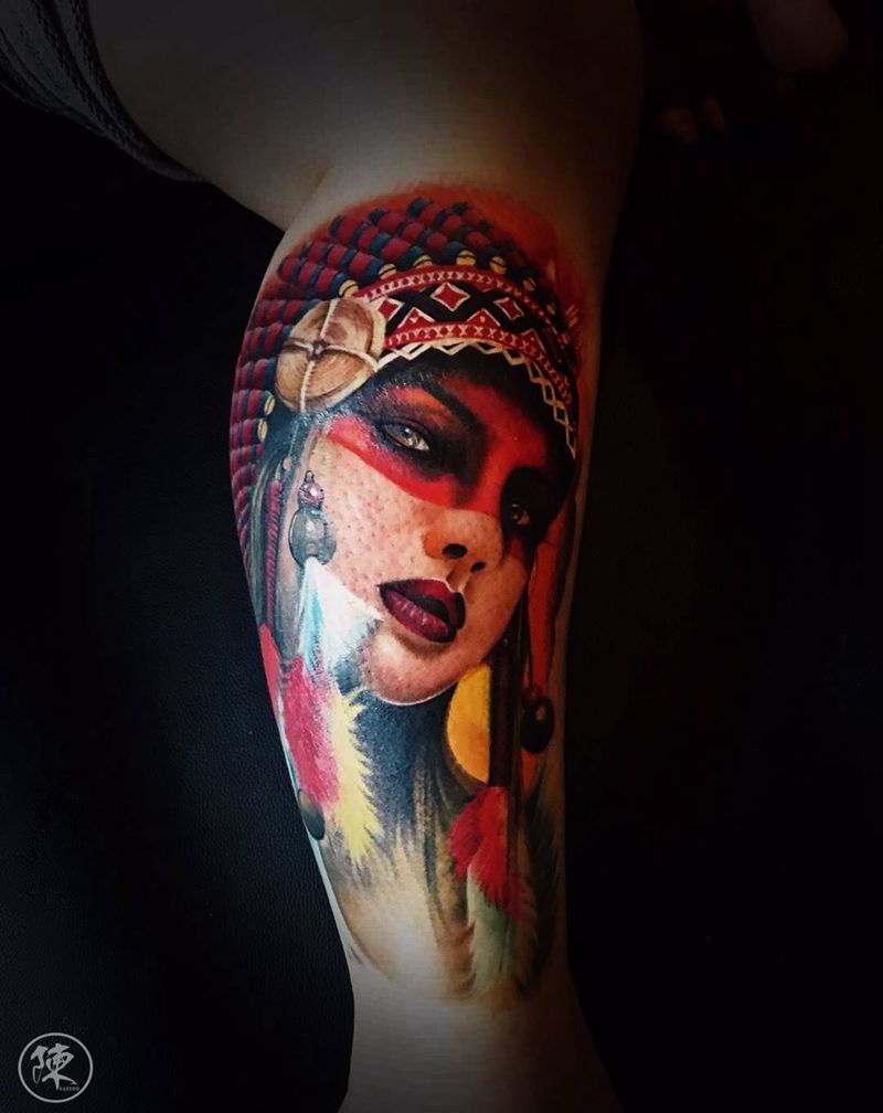 当前位置: 首页 >安徽省蚌埠市纹身店-蚌埠刺客纹身培训-陳TATTOO纹身图案>印第安女纹身图片