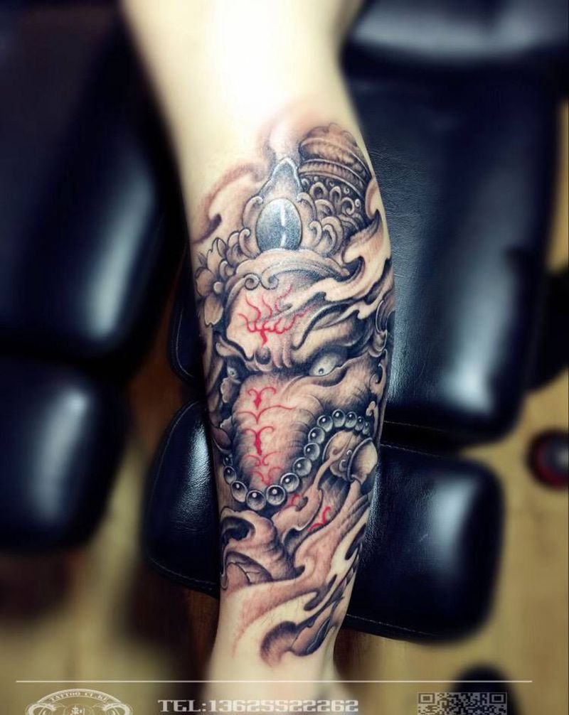 当前位置: 首页 >安徽省蚌埠市纹身店-蚌埠刺客纹身培训-陳TATTOO纹身图案>小腿象神纹身图片