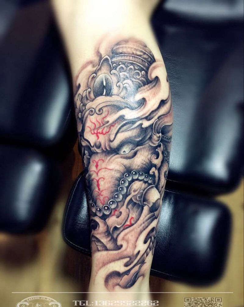 当前位置: 首页 >安徽省蚌埠市纹身店-蚌埠刺客纹身培训-陳TATTOO纹身图案>小腿象神纹身图片