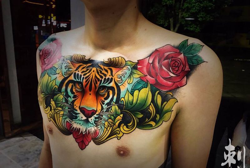 • 女性大花胸纹身_43张霸气漂亮的女性大花胸纹身图案作品