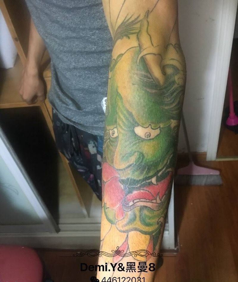 花臂纹身图片_成品习俗手臂鬼神纹身图案