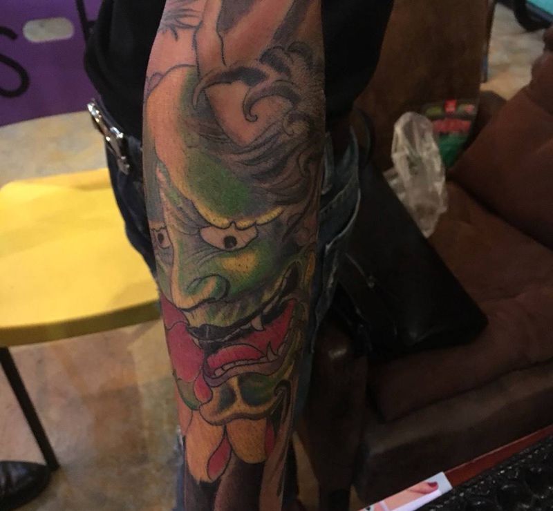 花臂纹身图片_成品习俗手臂鬼神纹身图案
