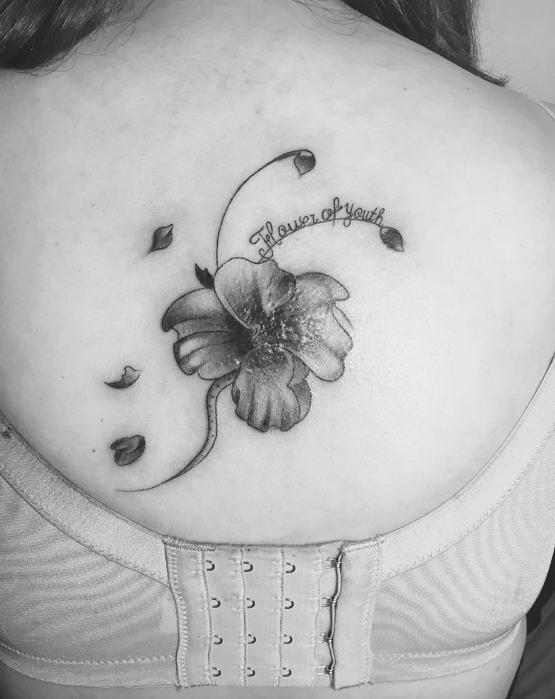 当前位置: 首页 >安徽省合肥市纹身店-黑曼8Tattoo纹身图案>含苞欲放纹身图片_成品背部写实清新植物纹身图案