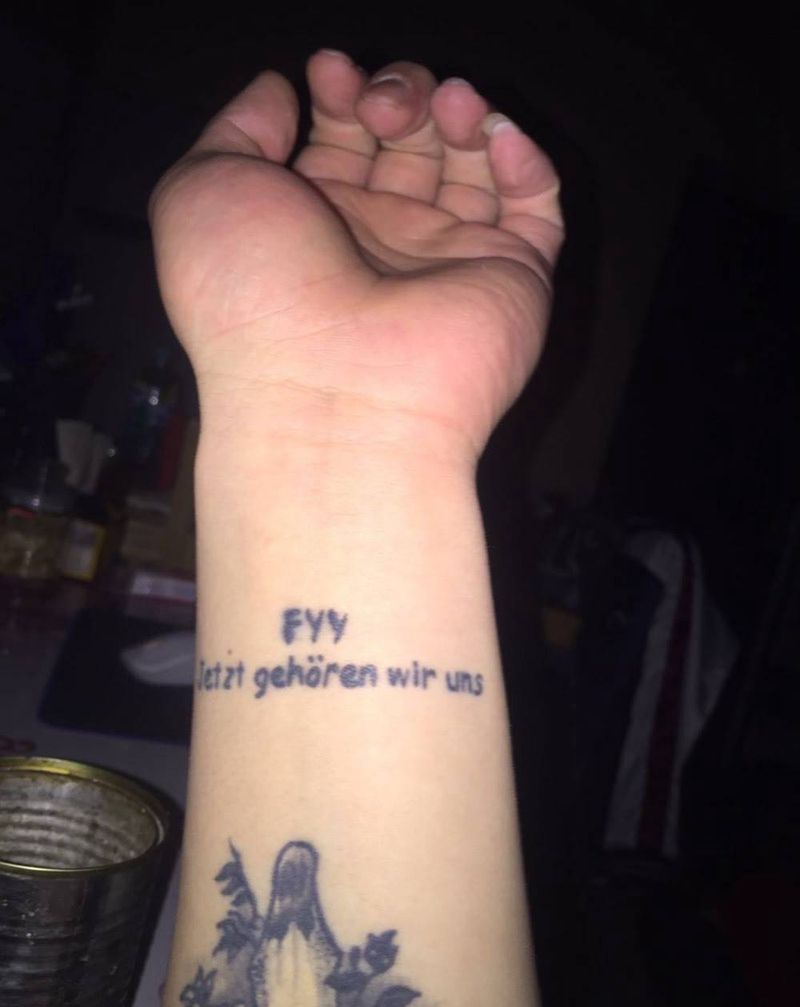 丑萌女纹身图片_成品手部手臂欧美人物纹身图案