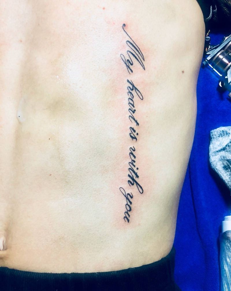 当前位置: 首页 >安徽省合肥市纹身店-黑曼8Tattoo纹身图案>英文纹身图片_成品腹部欧美字符清新纹身图案