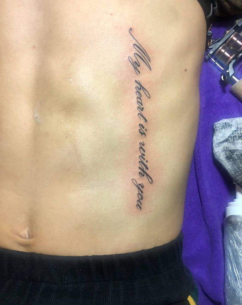 英文纹身图片_成品腹部欧美字符清新纹身图案