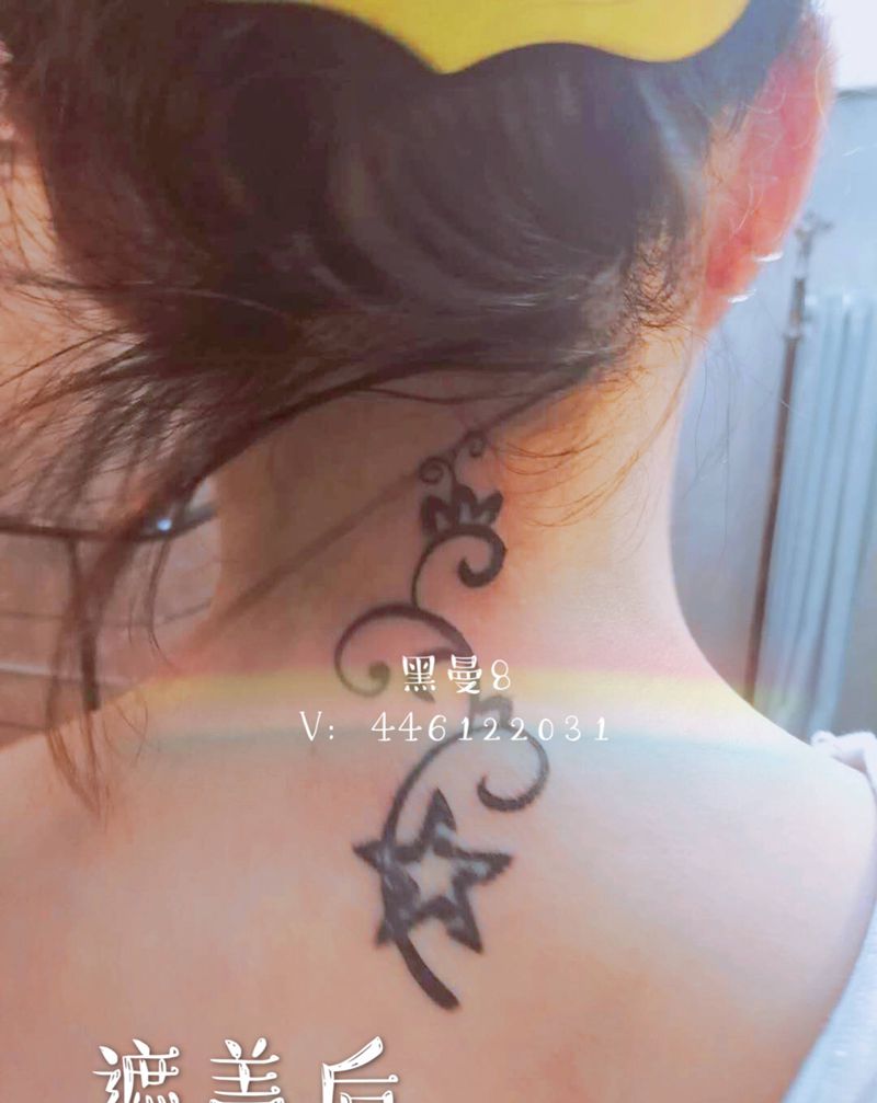 坠落的星星纹身图片_成品颈部图腾纹身图案