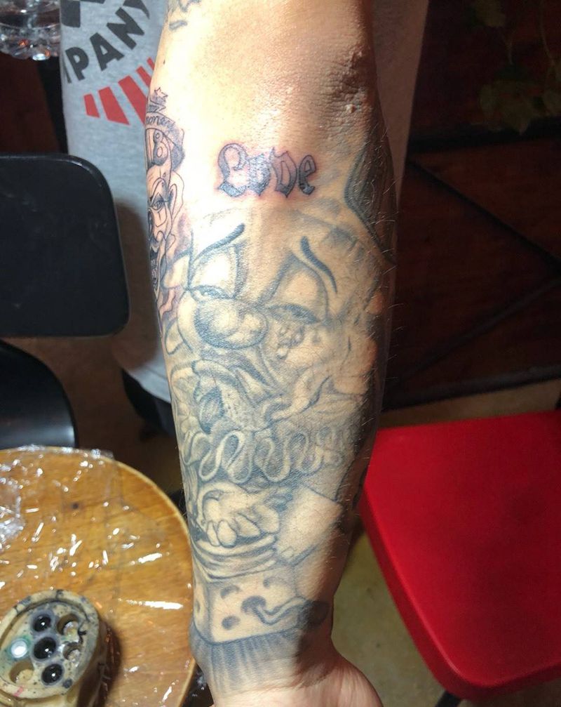 当前位置: 首页 >安徽省合肥市纹身店-黑曼8Tattoo纹身图案>小丑花臂纹身图片_成品手臂欧美人物字符纹身图案