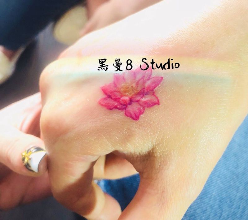 当前位置: 首页 >安徽省合肥市纹身店-黑曼8Tattoo纹身图案>莲花遮盖疤痕纹身图片_成品手稿手部国画清新植物纹身图案