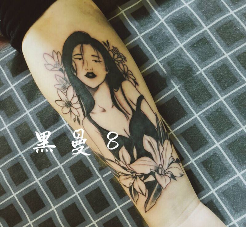 当前位置: 首页 >安徽省合肥市纹身店-黑曼8Tattoo纹身图案>性感小清新共存纹身图片_手臂小清新女孩 花卉纹身图案