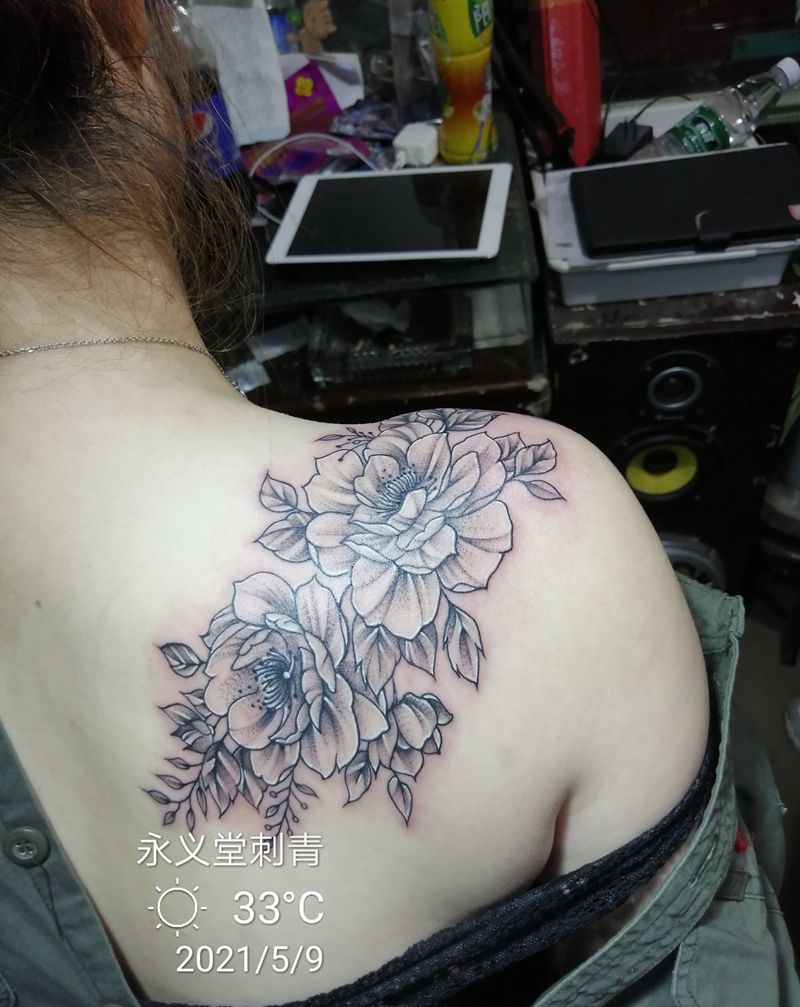 素花纹身图片_背部手臂New School新传统纹身图案