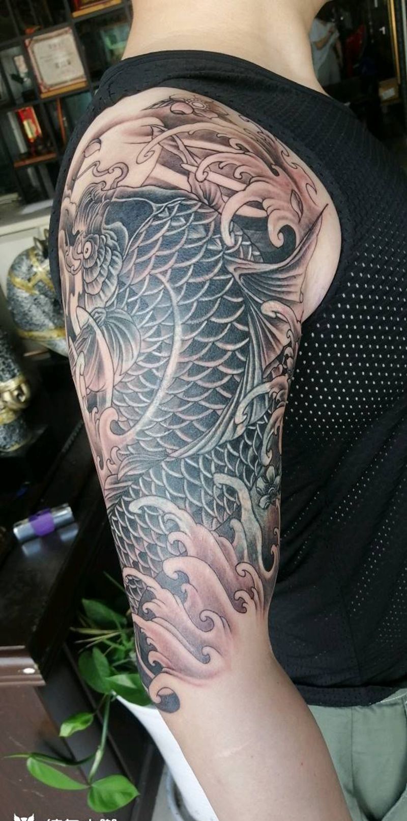 当前位置: 首页 >安徽省芜湖市纹身店-芜湖市永义堂刺青纹身店纹身图案>鲤鱼盖一个很大图腾龙纹身图片_手臂腿部老传统新传统纹身图案