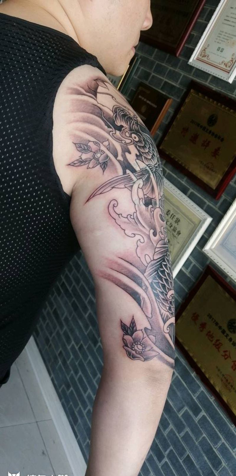 当前位置: 首页 >安徽省芜湖市纹身店-芜湖市永义堂刺青纹身店纹身图案>鲤鱼盖一个很大图腾龙纹身图片_手臂腿部老传统新传统纹身图案