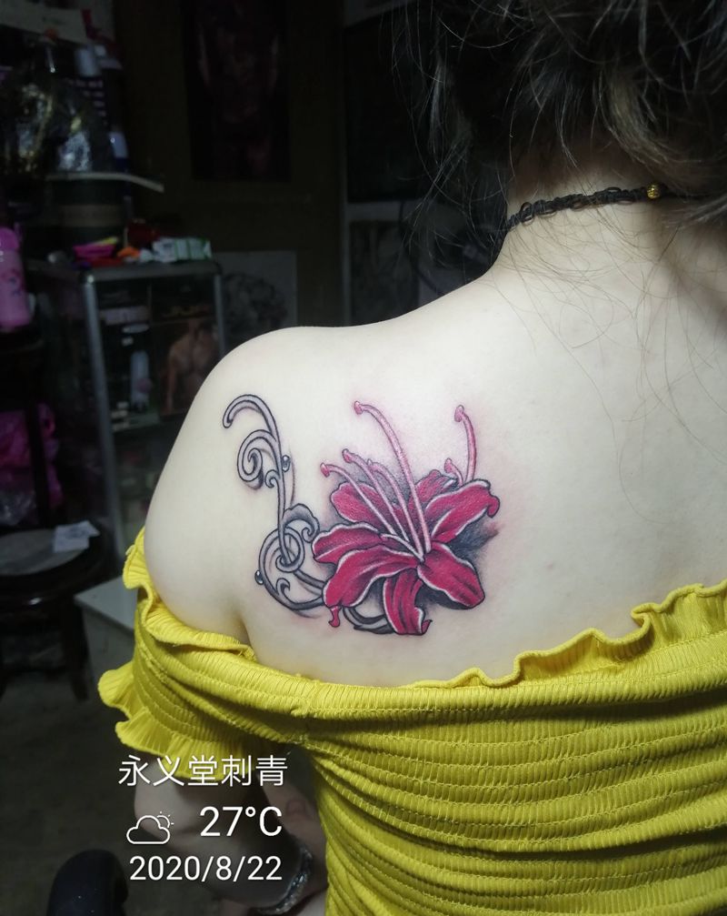 当前位置: 首页 >安徽省芜湖市纹身店-芜湖市永义堂刺青纹身店纹身图案>百合花纹身纹身图片_肩部胸部新传统老传统纹身图案