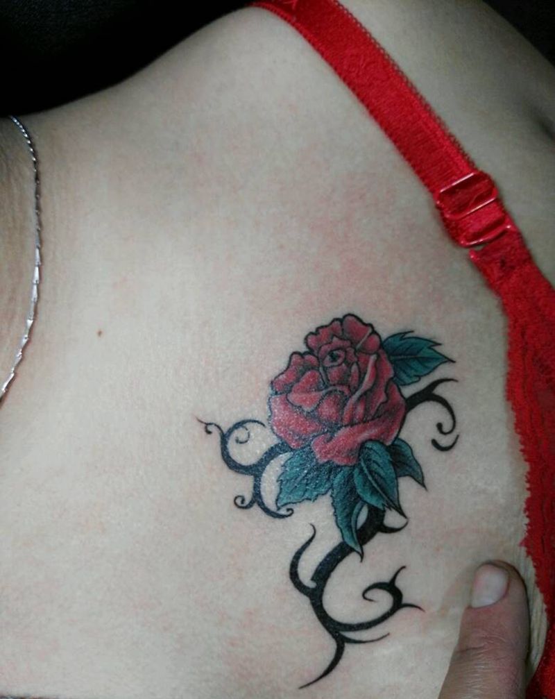 • 女性大花胸纹身_43张霸气漂亮的女性大花胸纹身图案作品