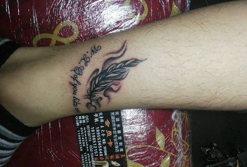 当前位置: 首页 >安徽省芜湖市纹身店-芜湖市永义堂刺青纹身店纹身图案>羽毛加字母,纹身图片