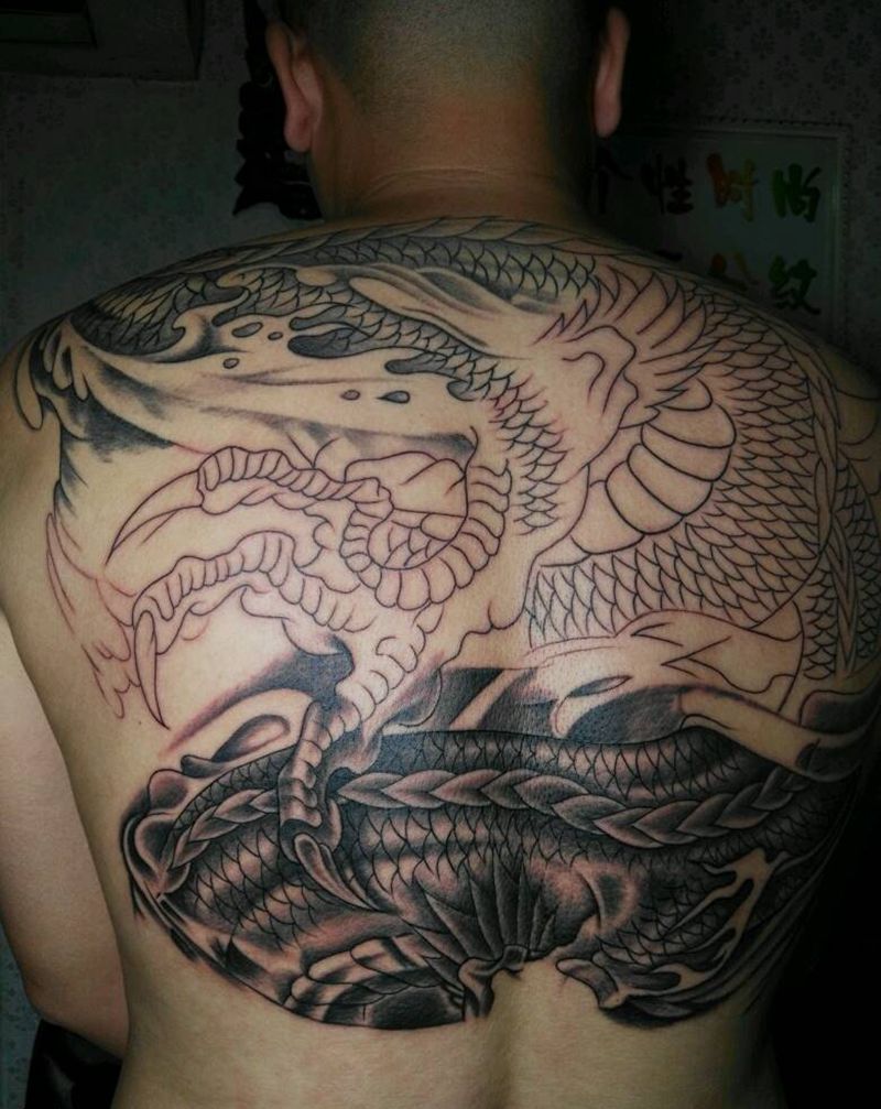 龙,未完,纹身图片_肩部胸部背部手臂腿部传统写实动物鬼神成品纹身图案